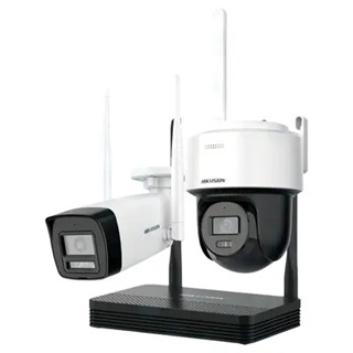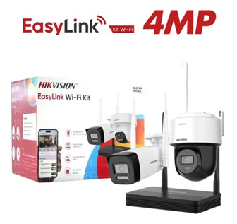 Cámaras (Bullet y PT Dome): sensor 1/2.7″ CMOS, resolución 4 MP (2560×1440), lente fija 2.8 mm, visión nocturna IR: Bala hasta 30 m / PT hasta 25 m + luz blanca 25 m, protección IP66, soporte Wi-Fi 802.11b/g/n/ax, audio bidireccional con micrófono y parlante integrados.